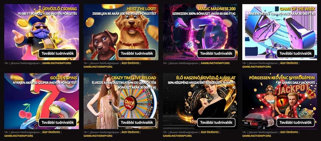 - Maximális tét bónuszok használatakor: 1500 Ft, maximális kifizetési limit: 30.000 Ft.